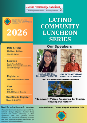 The Colorado Springs Latino Community Luncheon powered by the Colorado Springs Hispanic Chamber brings together our diverse community to share information and ideas, promote cultural awareness and educate the community on the events and issues impacting Hispanics | Latinos in El Paso County.  The Latino Community Luncheon is open to the public.